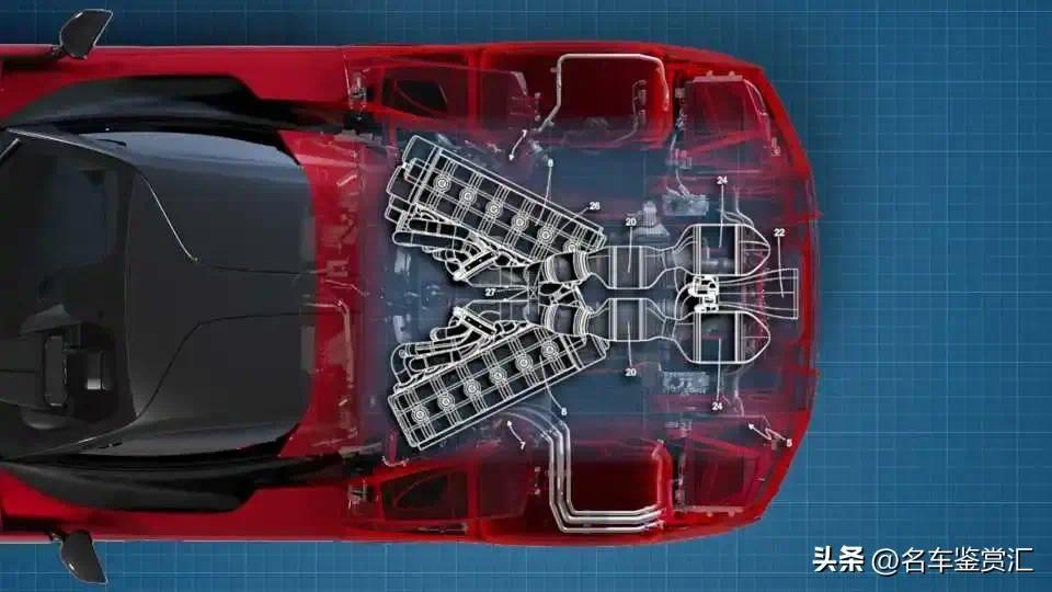 通过排气系统连接发动机不仅仅是为了布局方便,法拉利是希望它们能够真正联动。阀门会根据此时是一台还是两台发动机在运行,来开启或关闭“互联管道”。这样做可能是为了利用排气脉冲效应来优化气流。将两股废气合并到一个出口,也能确保三元催化器在更长时间内保持工作温度。